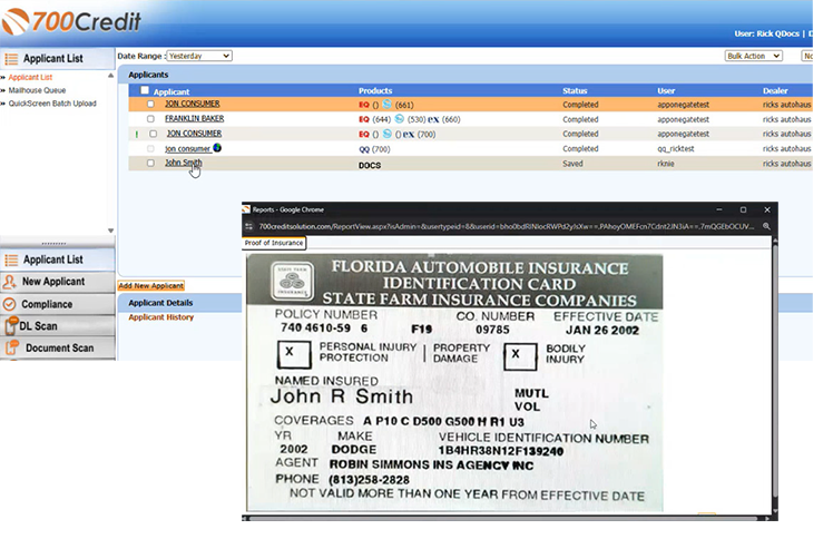 QuickDocs is our secure document capture and storage solution that builds on the concept of our QuickScan driver’s license authentication solution, making it easy for dealers to easily text a link to consumers purchasing a vehicle. Once receiving the link, shoppers will be led through the process of scanning relevant verification documents for secure storage in our 700Dealer.com portal. These documents become easily accessible in the portal at any time.