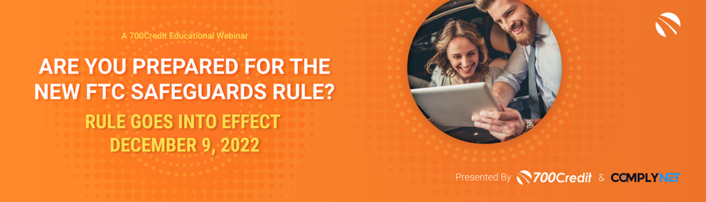 In this 700Credit webinar, Ken Hill, Managing Director of 700Credit will be joined by Adam Crowell, President & General Counsel of ComplyNet, the automotive industry leader in end-to-end compliance and risk mitigation solutions, and you will be provided with a comprehensive breakdown of the amended Safeguards Rule.